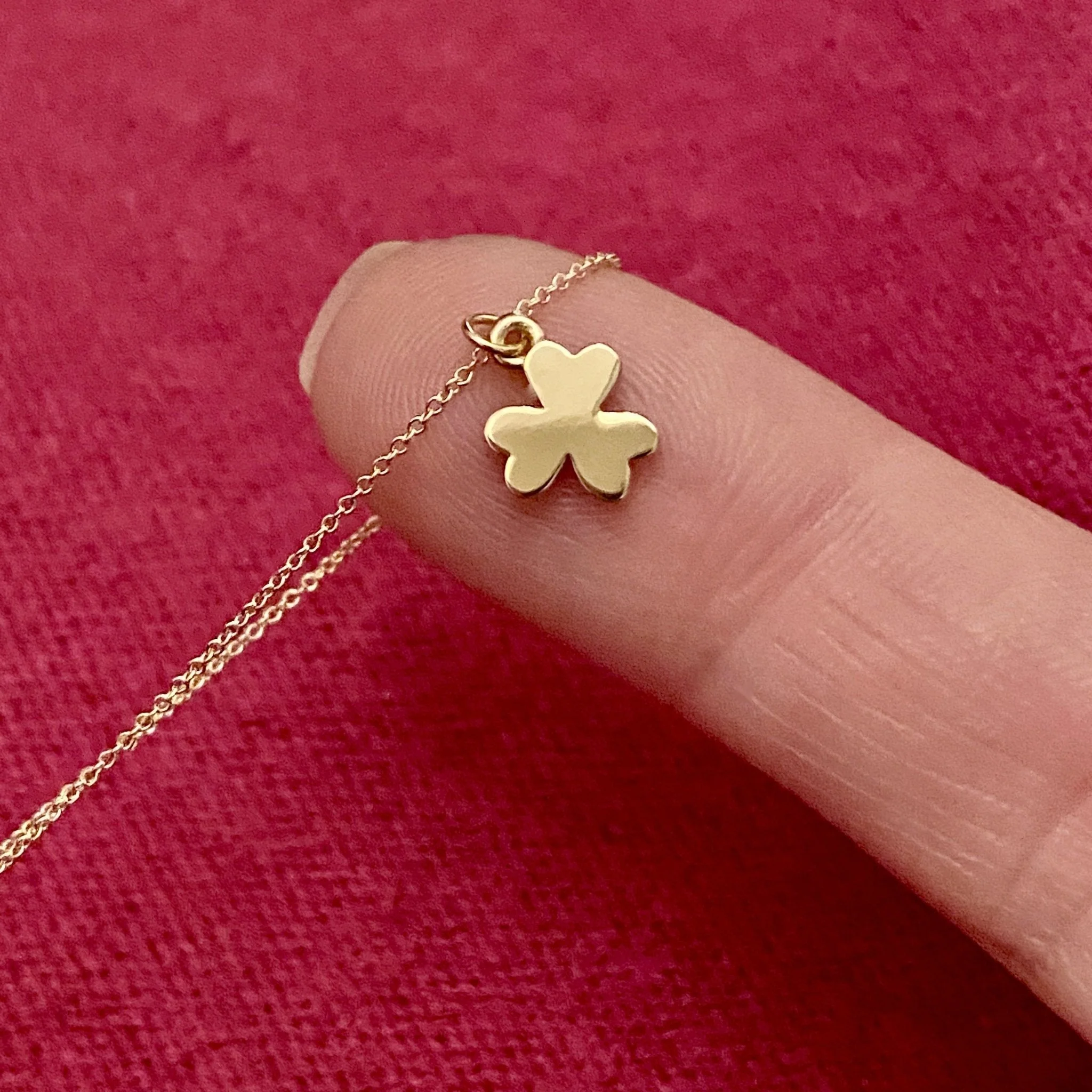 Handmade in NYC, our gold Shamrock necklace comes on a 16- or 18-inch solid gold chain and the charm measures approximately 6.5mm across. In line with our values, this necklace is meticulously crafted from ethically sourced solid 14k gold and we make this stunner in .925 sterling silver, too.