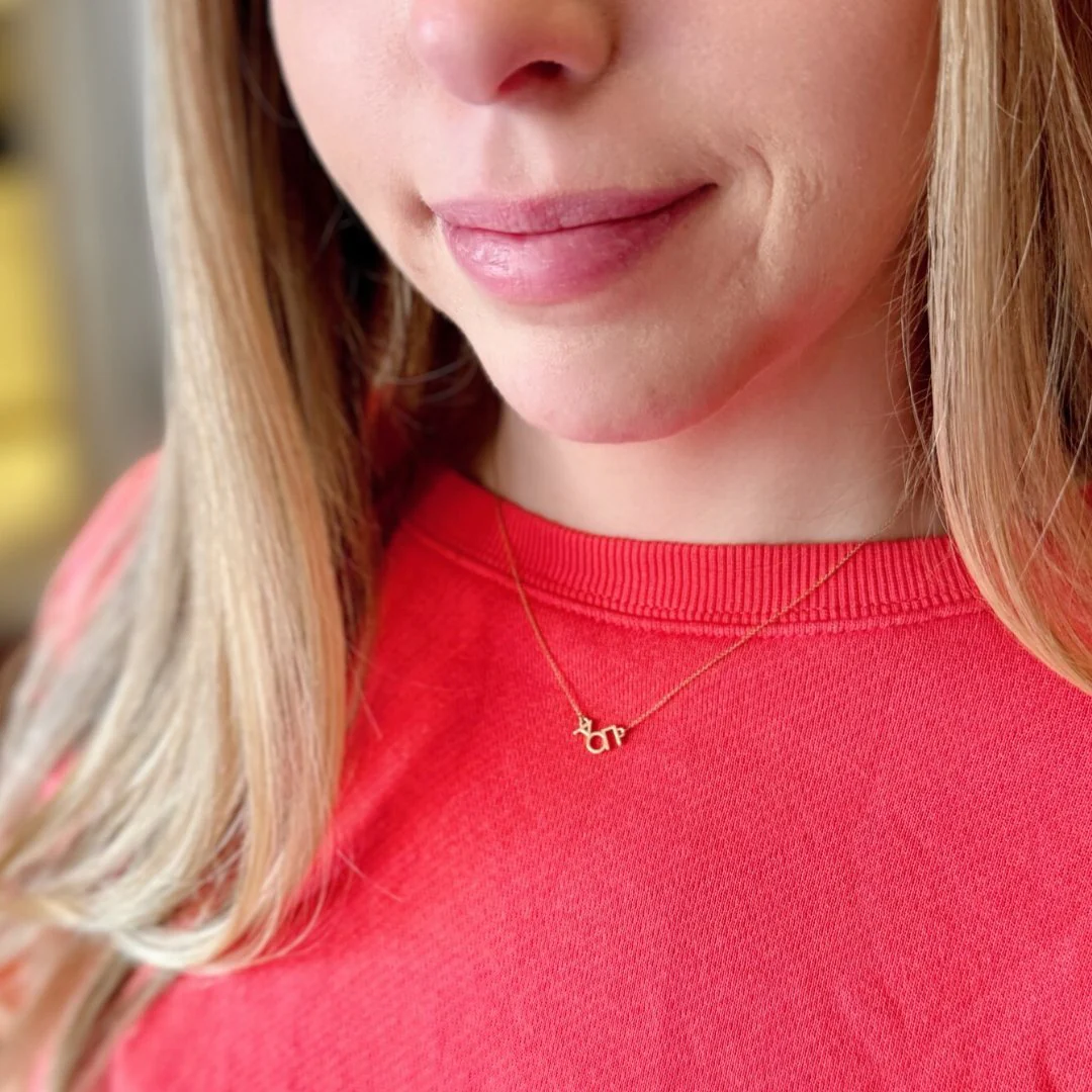 Our must-have solid gold Alpha Omicron Pi necklace spells out your letters in our exclusive Love Your Letters Greek alphabet, and you'll love how it shines! The dainty design makes it perfect for everyday wear – it coordinates with everything from casual athleisure to game day and date party looks. Once you put it on, you'll never want to take it off! It's the ultimate way to rep your lifetime commitment to Alpha Omicron Pi and your AOII sisters. (We 💕love💕 seeing bigs pass down their mazi + zo to littles!)