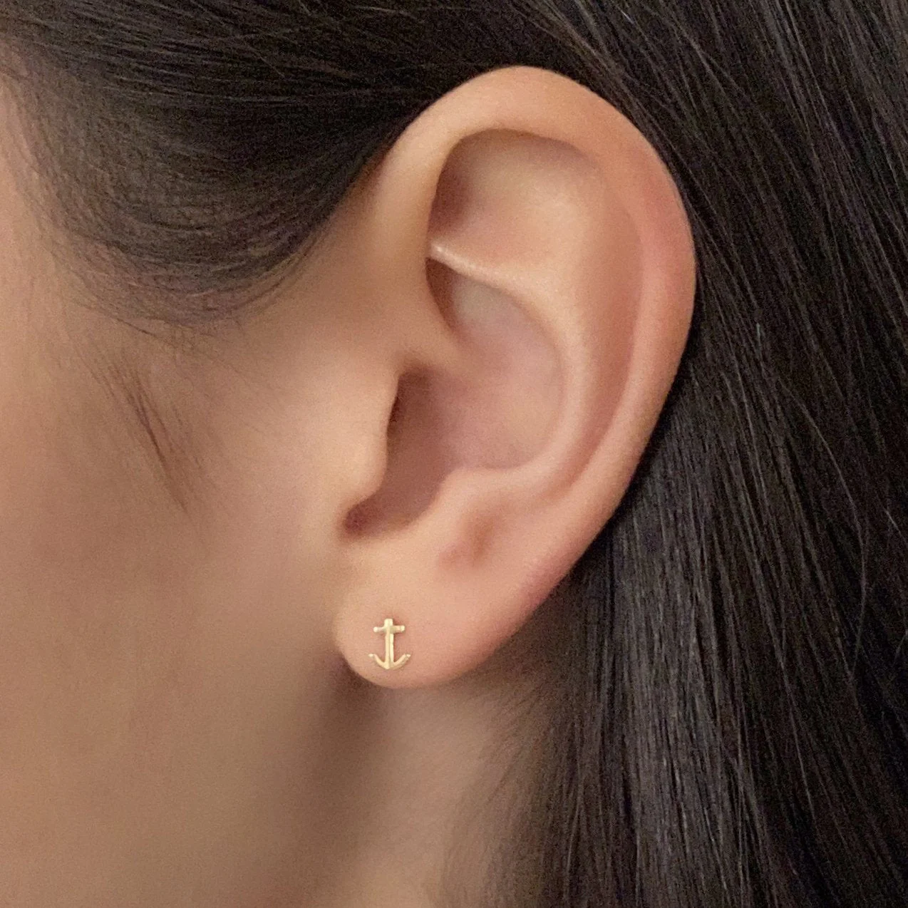 Handcrafted in NYC, each anchor earring measures approximately 5mm high and our earrings are made with sustainable solid 14k gold. We make these earrings in hypoallergenic sterling silver, too!