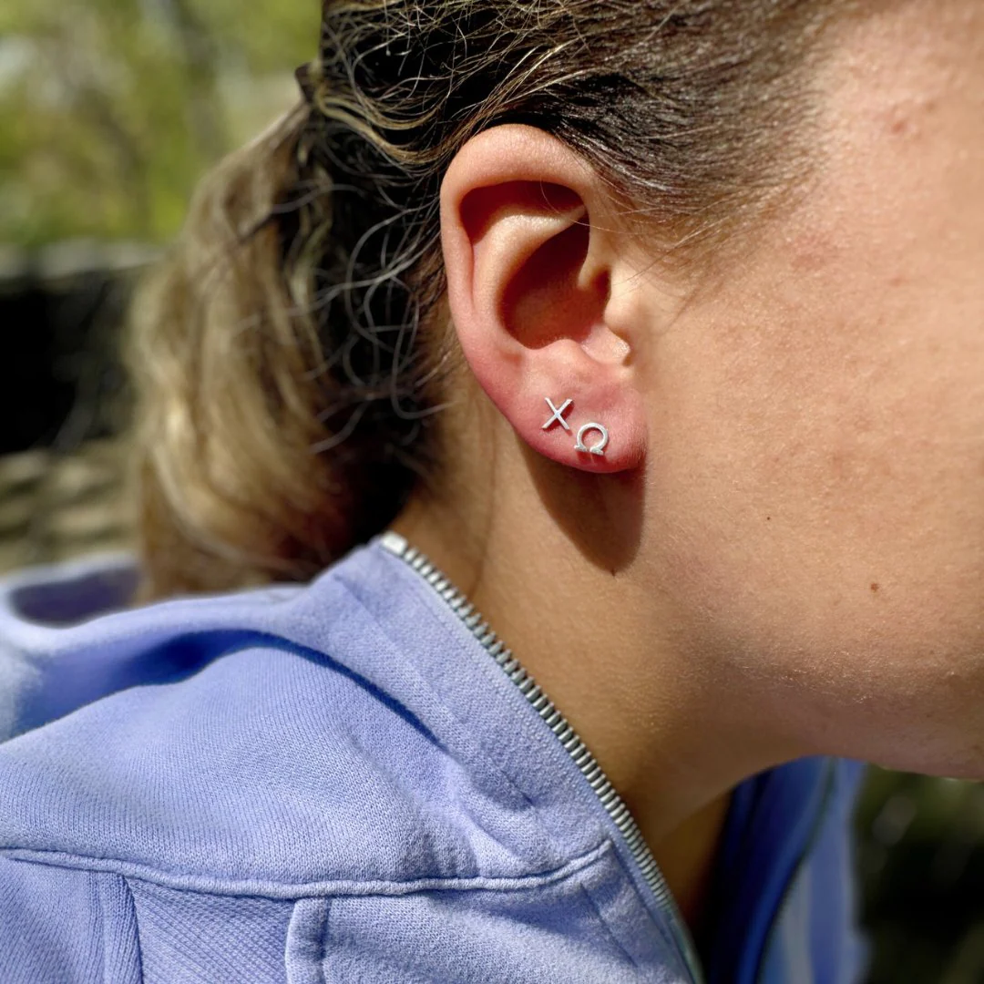 You’ll love wearing our dainty silver Chi Omega earrings and the guaranteed compliments they attract-- isn’t that why you got the second piercing?? These flawless low-key studs look amazing stacked on your right ear, and if you don’t have the “ear” estate, go book a piercing appointment! The clean, minimalist design of our exclusive Love Your Letters Greek alphabet means you can dress these up or down to wear with everything, so you can rep Chi O all day!