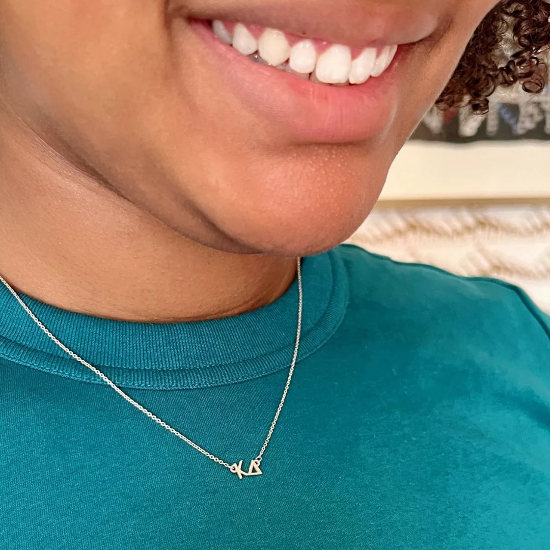 Our must-have sterling silver Kappa Delta necklace spells out your letters in our exclusive Love Your Letters Greek alphabet, and you'll love how it shines! The dainty design makes it perfect for everyday wear – it coordinates with everything from casual athleisure to game day and date party looks. Once you put it on, you'll never want to take it off! It's the ultimate way to rep your lifetime commitment to Kappa Delta and your KD sisters. (We 💕love💕 seeing bigs pass down their mazi + zo to littles!)